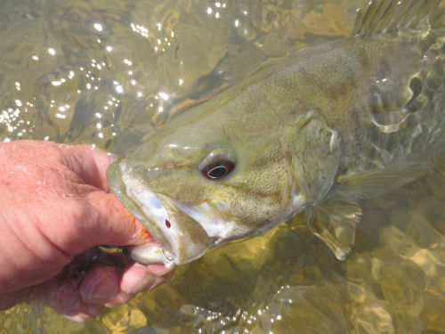 Just this past month I made my way north on a Sunday afternoon, along with my buddy Frank Terkhorn. We stopped and fished a stream that most people just drive over. I was over halfway back down to the truck when I made a nice cast up and over a log. Threw a mend in my line which allowed the fly to pause for just a second directly adjacent to the ‘kill-zone’. The KZ is something I talk about often with newbies…as big smallies take up residence in spots where food will get funneled right into their laps. The next few minutes were epic as I tried to jump up on the log (but missed) came crashing back down and ended up jamming a log into my thigh…all before going head-first into the deep eddy that the water had created as it flowed by said log! Much like my favorite scene in A River Runs through It; I was able to keep my rod hand high and taunt to the fish. After a few seconds and a few gulps of water I righted myself and stood up…fish still in tow. A few hundred feet later I lipped a 17 inch smallie that had a rather pronounced gut. I snapped a few photos, dropped my waders, sat down for a second and marveled at what had just happened. I wouldn’t change any of this…but my first thought was, “I’m not young enough to go jumping up on logs anymore”. A few seconds later and what really struck me is that when I was young enough to jump up on logs…I wasn’t smart enough to have caught this big bass. Time and age are truly equal opportunity employers; there is no better teacher than experience.