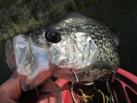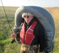 As you can see from the photo …Frank and I had to pack into Bass Lake. This is the real beauty of these float tubes; they are light and with minimal equipment you can get into any water and be functional. Recently while fishing one of the lakes in the Dugger Unit, I had a couple guys on the shore and they were discussing me and my little tube…or belly boat as they called it; now let’s get this point straight we are fishing from a float tube and not a belly boat. Many folks that have tried the latter still think that they are all uncomfortable and dangerous…but our float tubes are comfortable in that you are sitting on a comfy pad and are very safe in that they have two separate bladders that keep you afloat. Anyway…Frank and I fished Bass for about an hour and then moved to Island Pit in Minnehaha to try our hands at some trout and bass fishing.