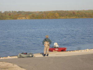 As it turned out the wind on Sunday was blowing swiftly from south to north and a bit of southeast to northwest; that being the case I put my boat in at the blacktop boat launch and Frank pumped us his tube, jumped in his waders, grabbed a pair of fly rods…and took off from the same point.