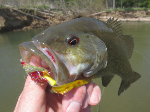 I’m not sure how things have been in your ‘neck’ of the woods…but here in southern Indiana we went from too cold and icy to way too much rain. The creeks (that hold smallies) went from too cold for any good fly fishing to water that has been too high and blown out for at least three weeks. This weekend (May 3rd) finally gave us a shot at getting out and casting for…and catching a few of the good spring smallies that are waking up from their slumber and looking for a meal to eat.